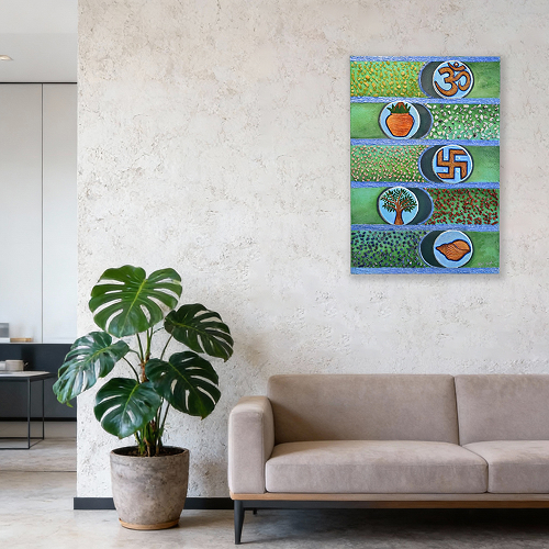 This artwork is further enhanced with sacred Vastu symbols: