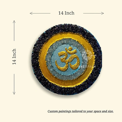 The sacred symbol Crystal Om represents wholeness, balance, and universal energy. This handcrafted acrylic textured painting with crystals is curated specifically for the West wall, a Vastu direction associated with gains, profits, wish fulfillment.